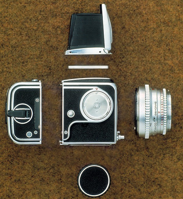 500C 相機(jī)的組裝十分簡(jiǎn)易,由于采用鏡間快門(mén)取代了機(jī)身中的焦平面快門(mén),鏡頭、膠片后背和取景器都可輕松更換。